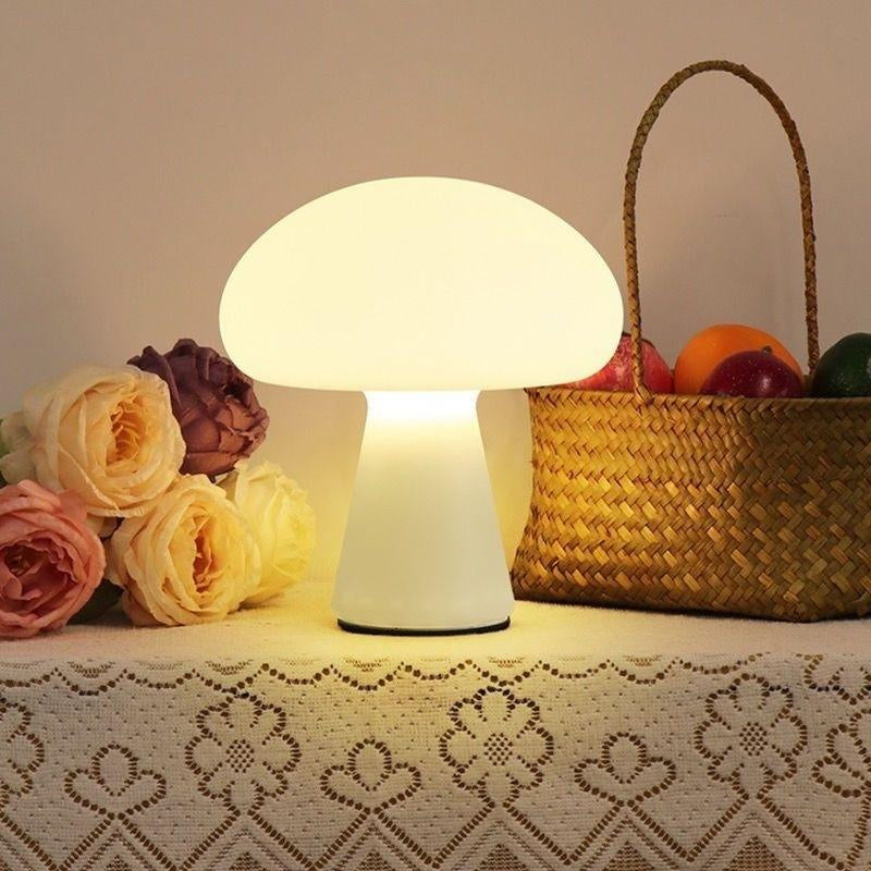 - Style: Mushroom-like form with curved shade and cylindrical base